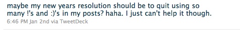 I, too, use the ! and the :) waaaaay too much in my posts. I gotta knock that off.