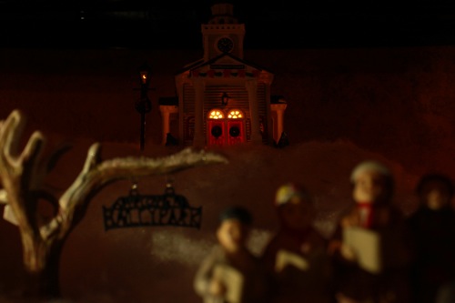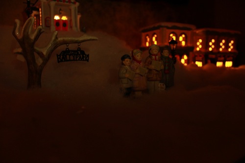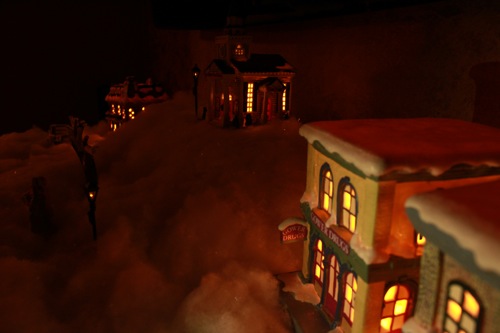 Your village is very cute, I have one, too and it, like yours is truly magical with all of the lights on and the room in darkness. Very fun!