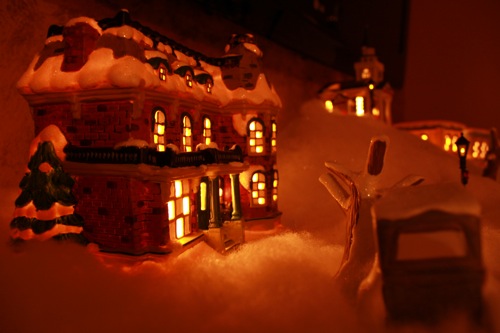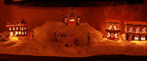 Ah I LOVE the Christmas village. I am going to put on up on my mantle in my house this year. I can’t wait. (: