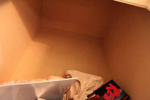 In our new-to-us house, all the closet ceilings go up to the height of the cathedral ceiling. I am looking for inventive ways to use that dead space–can’t stand to waste it. So far we have stashed guitar cases upright, gift wrap rolls like yours, and a couple of inflated air mattresses—all things that take up lots of vertical space but won’t kill you if it falls on your head. Anybody else have other suggestions?