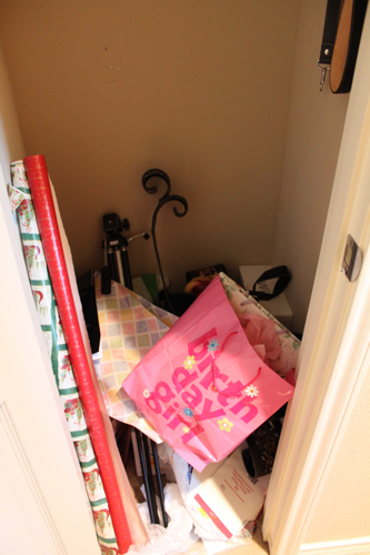 How clever! I wish that my closet was a tall wonder like yours! Great space for the wrapping paper! I have a closet like your before. You have inspired me. Thanks for the inspiration!!