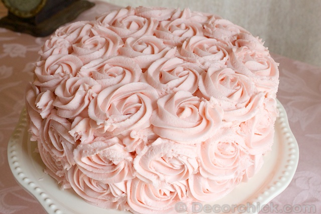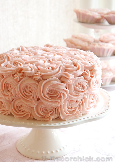 A friend of mine has made a few of these style cakes and swears they are easier than they look, but she prefers to use a slightly more difficult Swiss-meringue buttercream frosting vs a typical buttercream as the shape of the rosettes will hold up better in the face of summer heat and gravity.