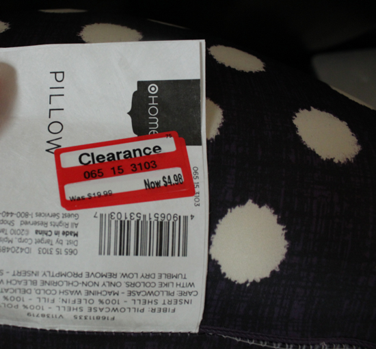 - Polka dot pillows: Target, on clearance for $4.98