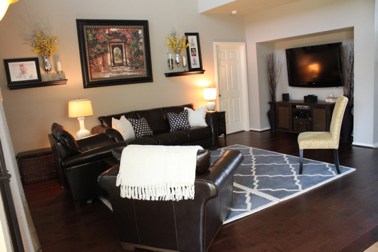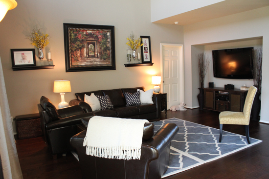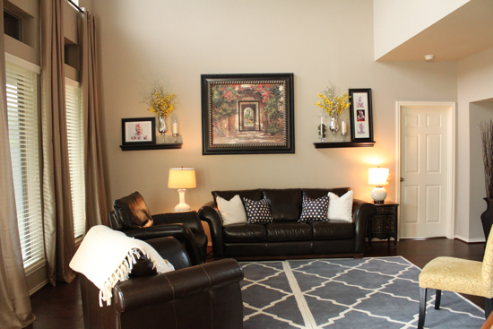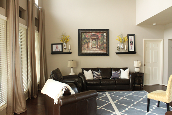 You did a wonderful “happily ever after job”. It looks great, I specially love your leather couches and your whole decor is just perfect! Lovely job!
