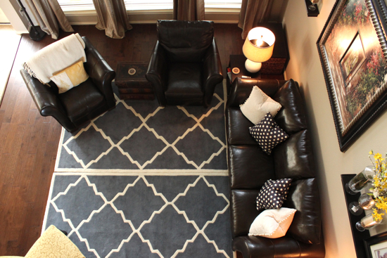 I think you are genius for putting the 2 rugs together! What a beautiful space~I adore the pillows as well!