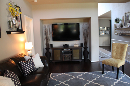 The t.v. nook looks way better than it did, but I still know we need some sort of built in or bigger entertainment center. But at least my darling husband put the subwoofer inside the entertainment center on the shelf instead of the floor so I could add these: