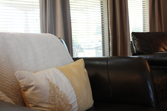 Emily, such a great job on the room makeover! I am still floored by the gray walls! And the blue colors… just gorgeous! I wouldnt have thought to put two smaller rugs together… genius. Ok, I’m running out of adjectives :) Love it, girl! xo