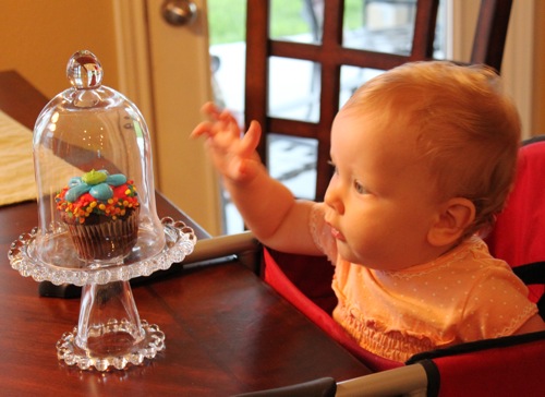 And if you happen to have a cloche (this is considered a cloche right?) around the house and a pretty plate, a cupcake makes a great accessory to taunt your child with.