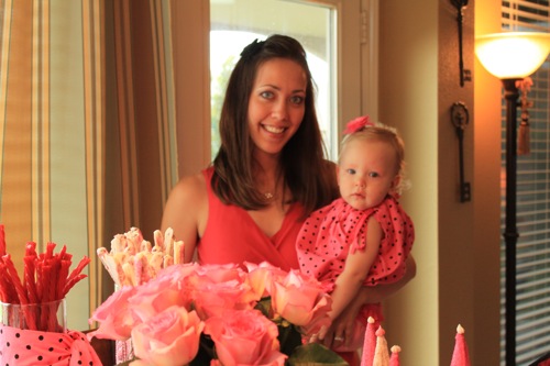 The theme was kind of princessy, polka dots, and hot pink. I asked people to wear pink if they had it too. :)