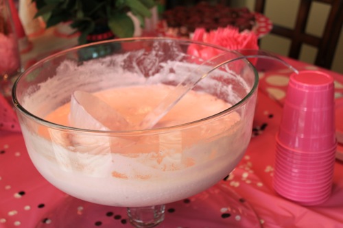 I made a pink punch with 7-up and strawberry ice cream.  I promise it was a light pink but the picture doesn’t show that.