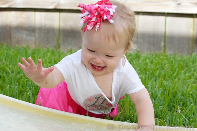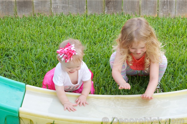 She was actually waving at her sister as she was coming down the slide. She loves her big sister so much and it was the cutest thing ever. And her cute little dress is from my sister–so sweet right?!