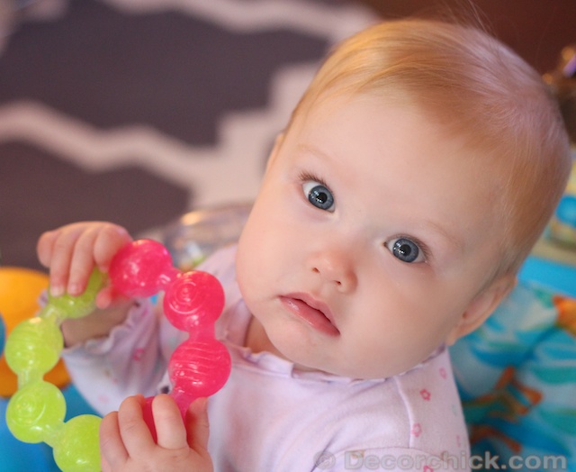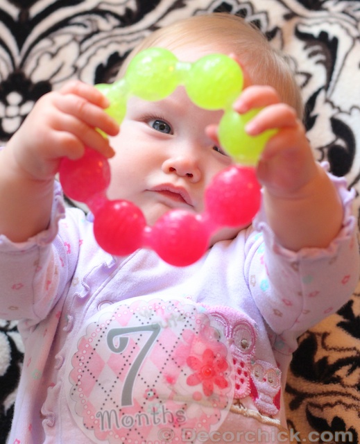 You can imagine though at 7 months she’s pretty squirmy so it’s hard to get a still shot! She had to have something in her hands this time.