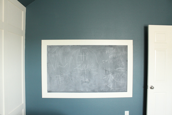 How fun! I’ve been wanting to do a chalkboard wall for my boys. I LOVE the color that you chose for his room!! :) I just might need to copy for my boy’s playroom ;)