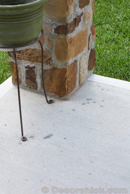 It didn’t take them away completely (a few it did), but it definitely minimized their appearance don’t you think? And that big wet spot I’m not sure what’s up with that?! Since I was on a roll I went ahead and did the majority of the patio and cleaned up the spots that I could. The slab is looking much better already!