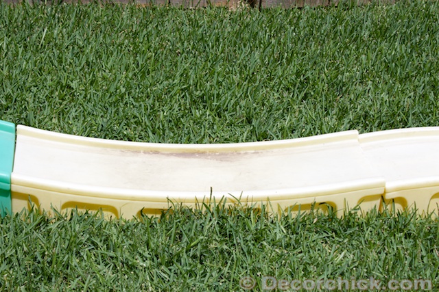 Then to try out the Mr. Clean Outdoor Pro Magic Erasers, I used it on the kids’ little rollercoaster.