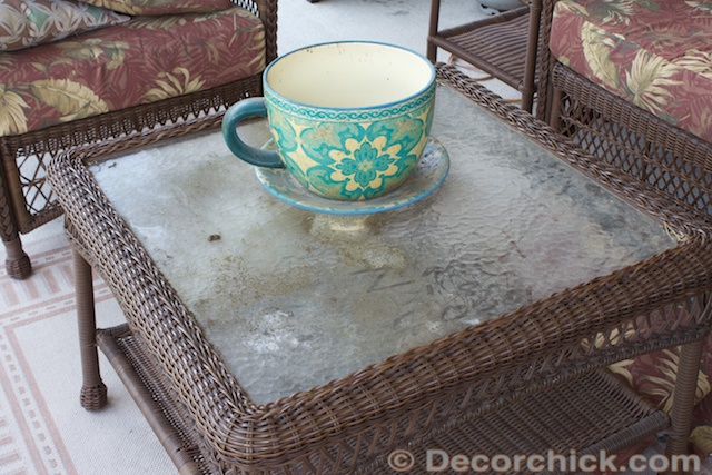 Our patio furniture has seen better days I’ll be quite frank. Heck you’ve seen my disaster of a closet, so why not show you other filth right? It’s the least I can do. I actually do enjoy cleaning when I have the time, which is rare. We go outside on the patio all the time, but kind of just “ignore” the nasty. Why we do that to ourselves I have no clue. Case in point, our coffee table out there.