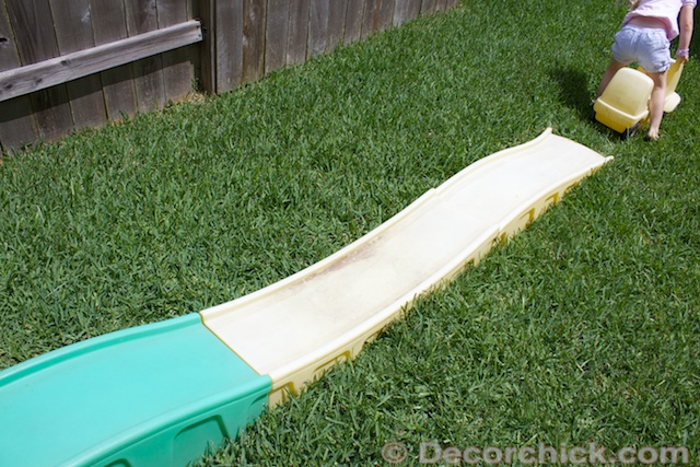 Oooooo! I never thought of using a magic eraser on that nasty spot o the kids slide! Love that idea!