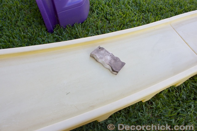 I love love love magic erasers so I was really excited about these outdoor ones. That spot on the coaster is not a spot that just washes off in the rain and that’s why I chose to test it out here. Magic Erasers clean EVERYTHING. They are amazing. Almost amazing as baby wipes. :)