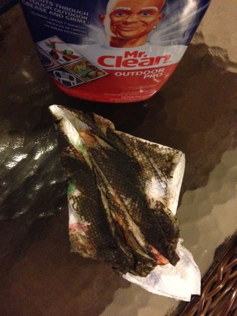 I’m not even sure what all of those are from. I am thinking though from my husbands BBQ pit because he does roll it over in this area when he cooks. Hmmmm.