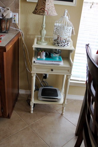 I have this little table in our breakfast area that you have seen in previous posts. It used to look like this.