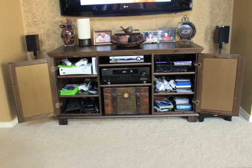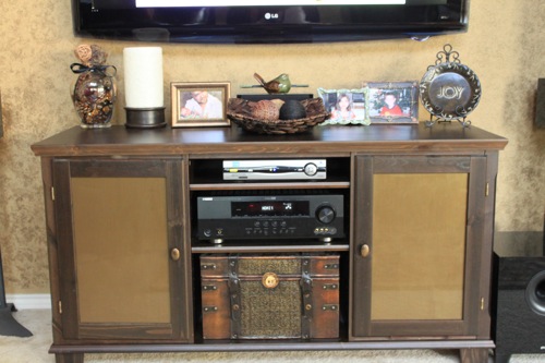 I don’t have a before picture of our entertainment center, but I know you can use your imaginations. :) Here is what it looks like now.
