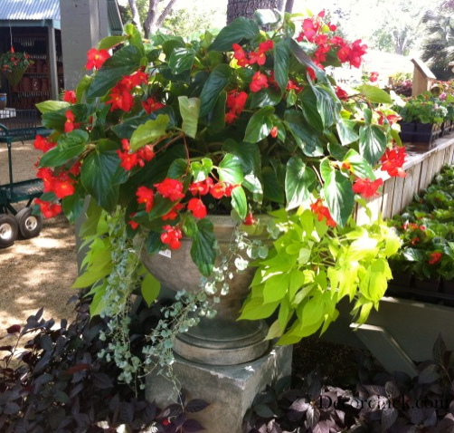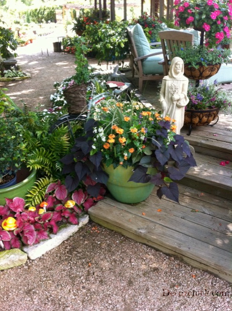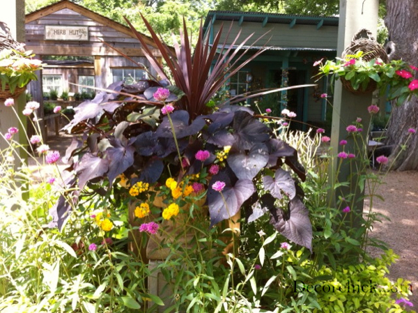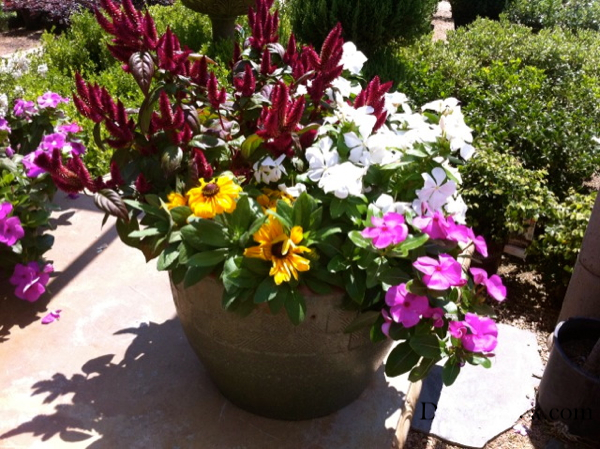 Beautiful container plantings! Mine never look that good! I recently looked into using shoe bags, of all things, as a hanging planter. Might try that idea! (It would make our chain link fence look a lot better!)