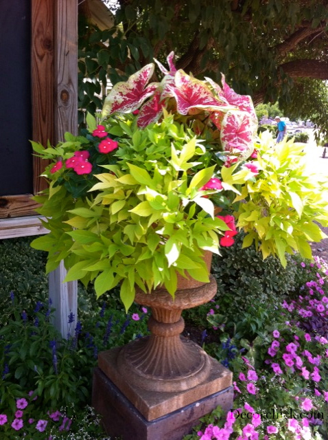 Love the sweet potato vines in the last photo! I plant them in my huge pots on my front brick wall. By the end of the summer, they are reaching the ground.