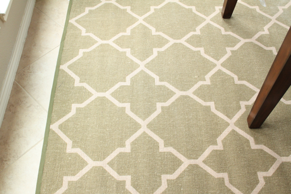 It’s a 5×7 jute rug that has a trellis/geometric pattern to it, and it was only $34!! Yes, THIRTY-FOUR dollars. :) I’ve been looking for one to go in our breakfast room for a while, so I was so happy to come across this. And the green goes great in there.