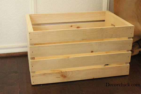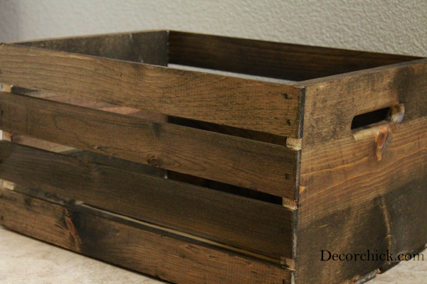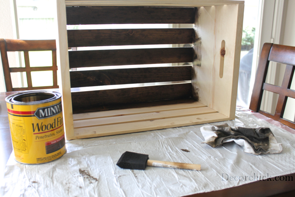 This project was so easy because I bought the crate already put together, and unfinished so I could do what I wanted with it. I got mine at Michael’s and I think I paid $9 or $10 with my 50% off coupon. BTW- Don’t pass up those woodworking aisles at your craft stores. They have tons of cool things like this that you can paint and stain!