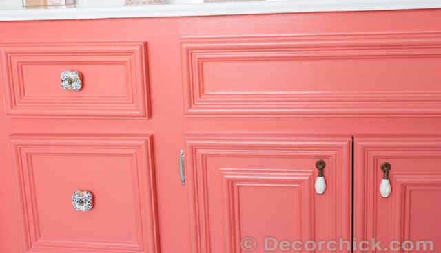 You definitely inspired me to dress up our little, dingy, brown vanity in our basement guest room – it definitely needs a pop of color like Coral Beauty!