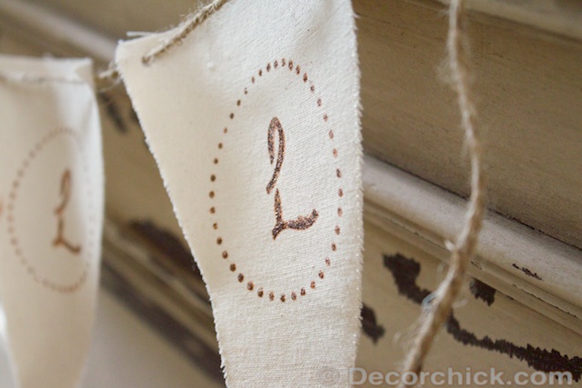 I made a very simple Fall banner and used a stencil I already had and some bronze craft paint. Then connected it all with a little twine. So easy!