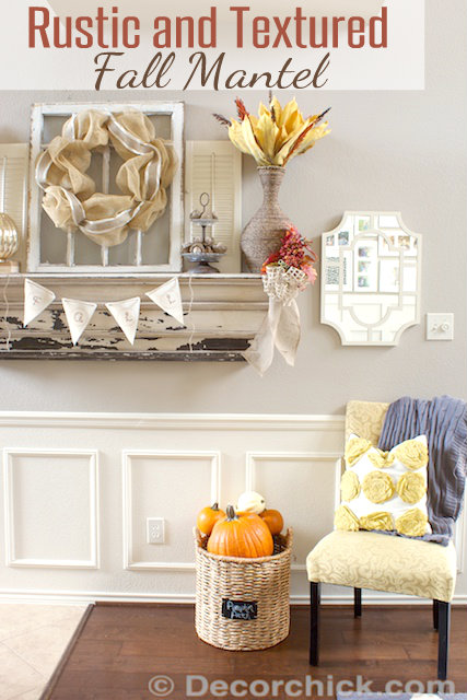 Woohoo who’s ready for Fall?! I know I’ve been talking about Fall since the beginning of the month, soooo, you know I am. :) This year for the Fall mantel I decided I was really digging textures and the rustic look, so that’s how the mantel ended up. Quite a difference from last year’s gold and glam mantel! But something about burlap and pretty textures always draw me in so I went for it and came up with this.