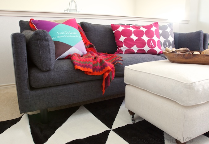 That is a great sofa! I love the color, it looks so good in your space with the colorful pillows. What a fun “gameschool” room.
