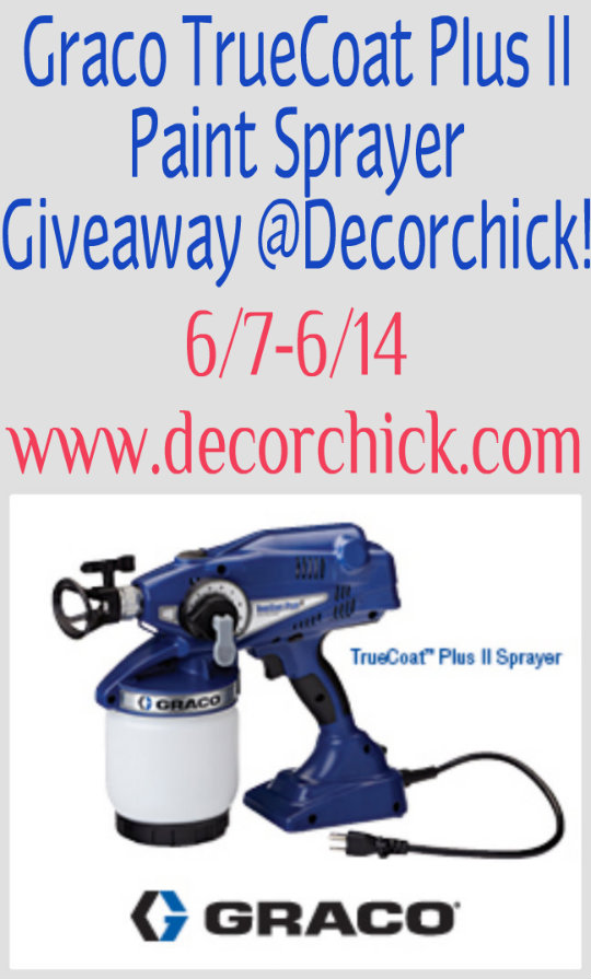 If you’d like to enter the giveaway for a chance to win the Graco TrueCoat Plus II Paint Sprayer, just follow the directions on the Rafflecopter widget below.