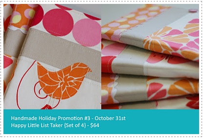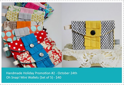 Both items are great! I use the snap wallets for my business cards and they are perfect. And I always get complimented on it when I pull it out. It was a hit at Blissdom too! And those list takers are just adorable–I’m quite fond of mine and it’s always on my office desk. :) You also can read more about the Handmade Holiday promotions over on this post Andrea wrote.