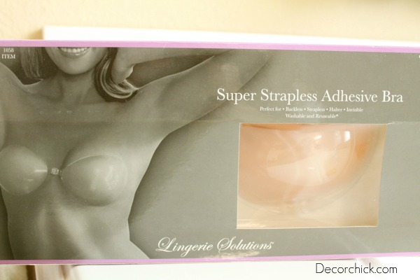 This thing is awesome. My sister told me about it a while back and I finally bought one. You get it at Target and it’s $25.  I got the silicone/gel-like version (it also comes in fabric but I don’t know if it works as good), and all it does is each cup has built-in adhesive sticky stuff on the inside and sticks on the front, then you connect the 2 cups with the little snap closure in front.  It’s very comfortable and still offers a little support.  One reason I don’t wear strapless clothing is because I hate strapless bras.  But this is nothing like a strapless bra.  Try it, you’ll like it!  :) P.S.–on the Pin It button at the end of this post, it will be this picture so people can remember what the best strapless bra is.