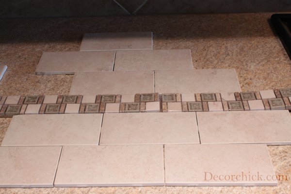 I also picked out that pretty accent piece to run through the subway tile design and am SO glad I did. It’s their Crackle Fantasy Glass Deco Decorative Accent piece. It adds so much more interest to the subway design.