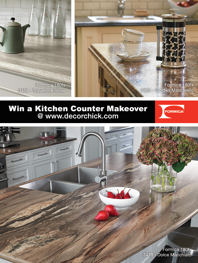- Visit Formica’s Facebook album titled “Kitchen Counter Makeover with Decorchick,” view all of the 180fx® options, and then come back here and leave a comment with your favorite pattern and tell us how badly you need new countertops. ;