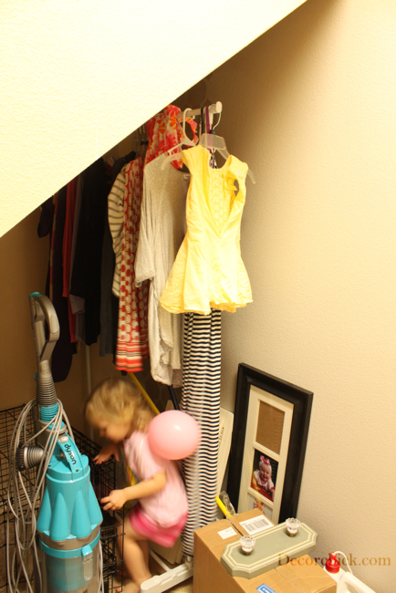 You’ll notice I decided to not remove the existing shelf and bar for now and just added some pretty bins for extra storage.
