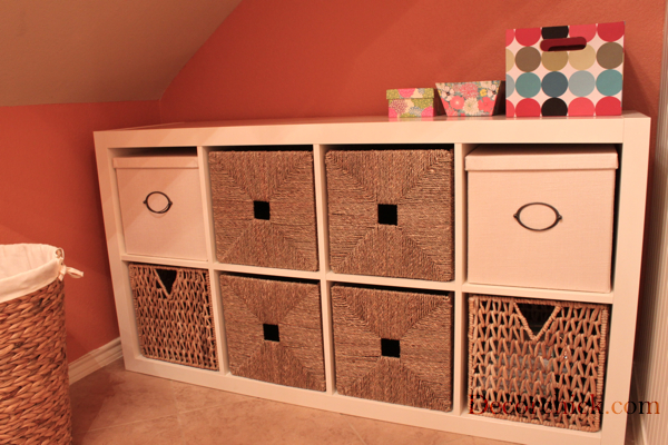 The storage bins are great, anything that gets clutter out of site is awesome. Great job with the whole space! :)