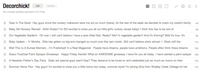 Do you even use a reader? A lot of people just visit the actual website which is great but I do like to see what has been updated in my reader first, and then visit the website to pin, comment, etc. If you’ve already switched from Google Reader I’d love to know what you are using and how you like it.