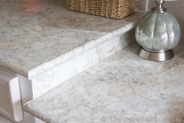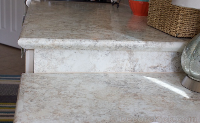 You know… We have that, too. We have our cabinets end and a splotch of wall between that and the french doors. I wish they had put more cabinets and counter in that spot. You can never have too many cabinets or too much counter, right? I love what you did and I have to keep convincing myself it’s not marble.