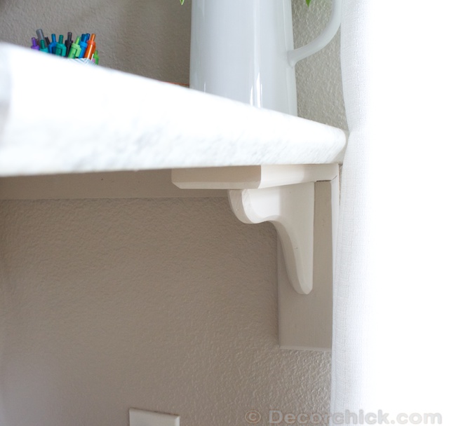 I painted the corbels the same as the wall color (SW Balanced Beige) so they blend in better instead of having white or something where it sticks out.