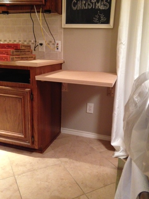 But anyway, I wanted our desk to drop down like hers as a little extension and built-in area.