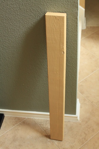And lastly, I had hubby cut a 2×4 scrap we had in the garage to fit in the space above the door, so it would give the pots some height. Then I painted it the same as our wall color so it would blend in.