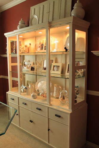 That came out beautifully. What a lucky find. That antique white is the perfect color. I am a big fan of the fact that you’re displaying your photo’s and other treasure, rather than dishes….it’s much more welcoming.