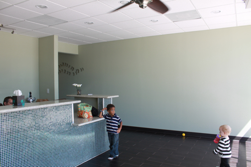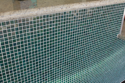 I really love the glass tiles my sister picked out for the front counter and all of the back splashes throughout the office.  She bought them from Overstock.com.