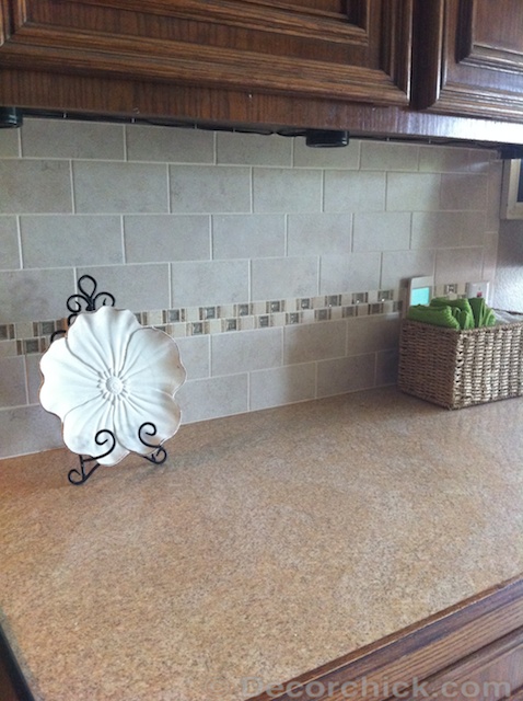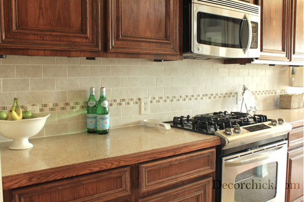 Hi Angela, I used Daltile for that. They were bigger squares that I had cut down into halves so I could get a subway tile look. You can find all of the details in this post. http://decorchick.com/kitchen-backsplash-progress/