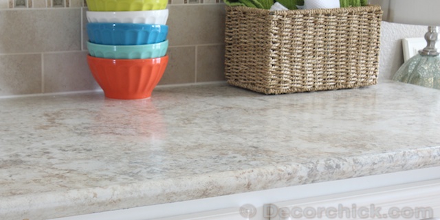 The countertops have this new special edge on them (no more laminate “brown lines!”) that really makes it more upscale and real-granite looking. It’s called Ideal Edge by Formica.