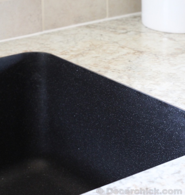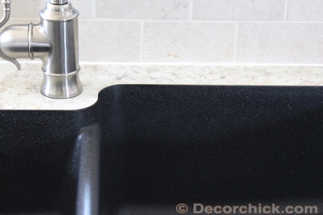 And if you were worried (like I was) about a black sink and waterspots, let me tell you something. It’s amazing how there are NOT waterspots! There are already little white speckles you can see in the sink from the quartz material, and I kid you not, that the sink never looks dirty. Ever. It’s amazing. And I want to kiss it. It’s my glistening gem. :)